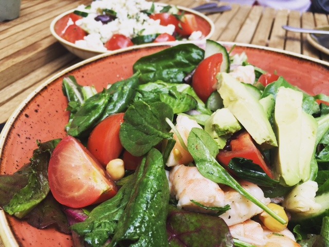 On the nourishment side, the brunch is a satisfyingly light alternative to your usual pack and stack brunch. The traditional Greek village salad and summer shrimp salads are perfect ways to kick off your meal. You can't help by feel good about yourself as you gaze into your bowl of bright red tomatoes, cucumbers, Kalamata olives, and feta.