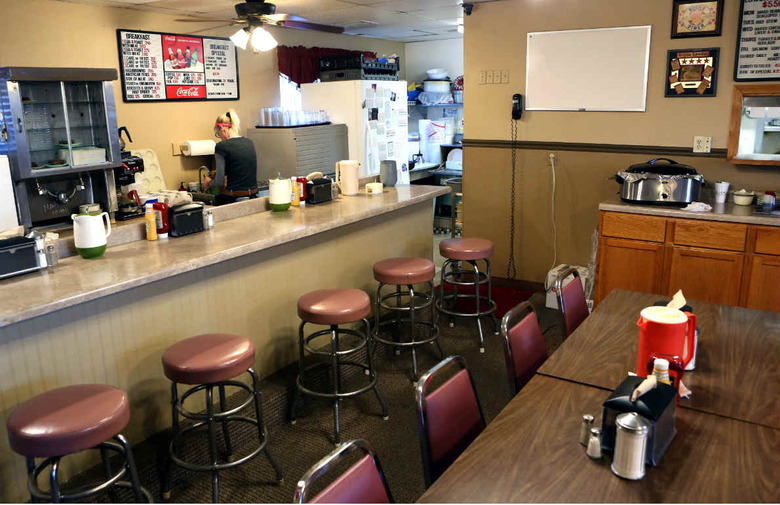 Breakfast includes staples like bacon, eggs, and fried potatoes along with good local conversation about the happenings in Sioux Falls, South Dakota. Lunch specials include turkey with stuffing, meat loaf beef stew, and liver and onions for a paltry $5.50. In what could almost be described as Depression-era prices, how about a tasty cheeseburger for $2.85 or a delicious piece of banana cream pie for $2.00?