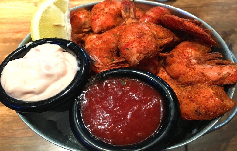 Signature items are clearly identified and include the Bucket O' Shrimp, a generous portion of chilled peel and eat shrimp covered in Old Bay seasoning with a side of cocktail sauce ($11.49). Another signature dish is the blackened mahi-mahi tacos prepared with a fresh citrus cabbage slaw and cilantro and served with Cuban-style rice and beans ($13.99).