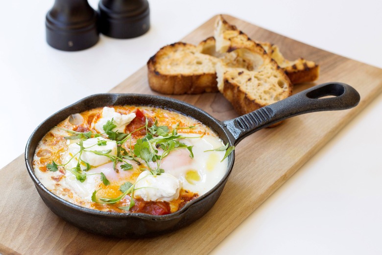 The most exquisite main choice is the braised eggs with leek, spinach, preserved lemon, and za'atar. Digging into the layers of flavors, the perfectly poached eggs break open. I will actually have to return to try this for myself (and not just steal bits from my dining companion). I'd also love to try the signature shakshuka, a North African combination of eggs, peppers, and tomatoes. I opted for the polenta, feta, and sweet-corn cakes with poached eggs and guacamole, all as rib-sticking as it sounds and almost too robust — but pure comfort food, made delicate through a touch of lemon cream and given bite with green chile.