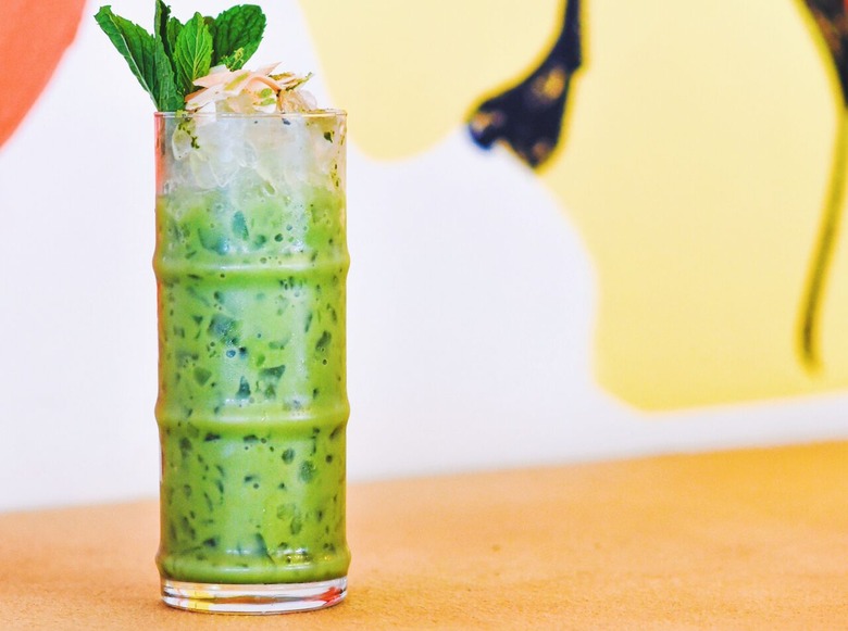 I would literally drink this every morning to start my day. This caffeinated drink is a combination of cold brew coffee shaken with pineapple, cilantro, and coconut sugar — served long (in a highball glass).