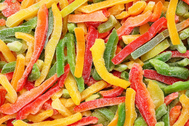 There's no argument against the health benefits of a bell pepper: just half a medium bell pepper provides a daily dose of vitamin A and twice as much vitamin C as an orange. These two vitamins help neutralize free radicals that, in turn, helps reduce heart disease, some cancers, and cataracts... that is, if they are fresh. The bell peppers you find sitting on your produce stand could be more than few days old, which is why nutrient-dense foods like red bell peppers are key to remember when considering frozen versus fresh vegetables. Buying frozen bell peppers is a little more expensive than buying fresh, with prices for fresh being around $0.21 per ounce* and frozen being around $0.37 per ounce, but it's worth the extra dough considering the amount of nutrients that are saved, and of course, frozen peppers are pre-cut, cored, and seeded.