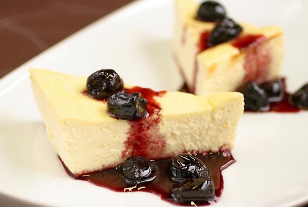 Now you can enjoy this creamy ricotta cheesecake all year round, with frozen cherries.