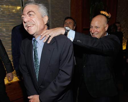 FCI founder Dorothy Cann Hamilton caught up with chef Jonathan Waxman in the center of the room. Anthony Bourdain, the roast's anticipated closer showed up sharply dressed, his very large movie star head several higher than those in the rest of the room, especially so over the scraggly-bearded Time writer Josh Ozersky who could be overheard discussing the matter of double-chins.with chef Michael White who he was attentively patting. "Does that beard do anything to help?" White asked suspiciously.