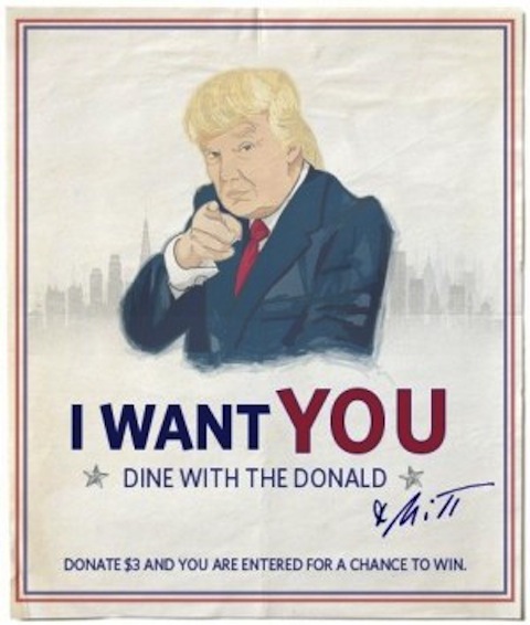 Talk about the biggest dinner disappointment ever — last night, a randomly selected donor to the Mitt Romney presidential campaign had to take a rain-check on his prize for donating $3 to the Republican's campaign: a meal with Donald Trump and Mitt Romney.