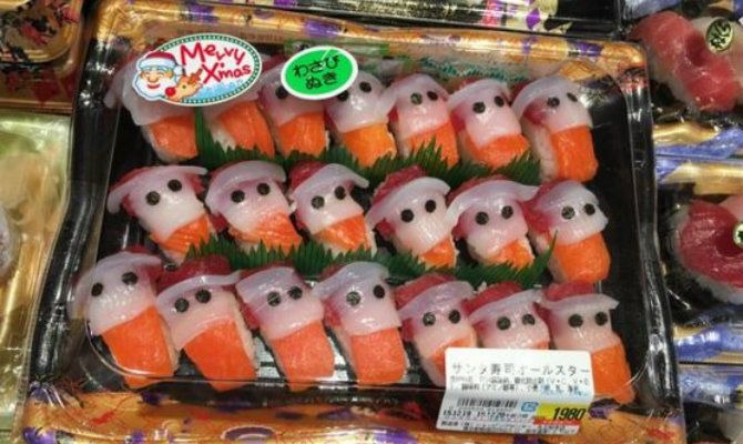 Anyone looking to celebrate Christmas in Japan could do worse than to head over to a local grocery store, where special holiday-themed dishes abound, including one particularly cute tray of Santa-themed sushi that one Twitter user found at a local supermarket.