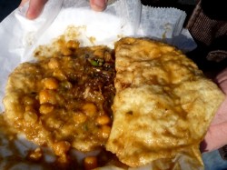 1) Royal Bakery & Roti House 618 Nostrand Ave., Bedford-Stuyvesant, Brooklyn; (718)604-0200, (Mon-Sat, 8:30am-8pm). There's nowhere to sit and food literally arrives through a hole in the wall but the soft, spongy bara had a crisp outer layer that made it structurally sound and the lip-tinglingly spicy channa featured large chickpeas and plenty of herbs. As my partner said, "they killed it." Doubles happiness, $1.00. Arthur's Grade: A/A- Terrence's Grade: A
