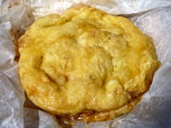 5) Gloria's #III 764 Nostrand Ave., Crown Heights, Brooklyn; (718)773-3476, (daily, 9am-10pm). Gloria's #III, does everything right philosophically. Bara have tiny specks of red pepper mixed in, channa has the proper herbage, and thinly sliced cucumber chutney impressively dress the Doubles ($2.00). This, and the spice lingering on your tongue should put it ahead of other comers, but the thin bara smelled floury and as Terrence noted, while the bara had nuance it was as if they were compensating for sub-par channa flavor, "the taste was all inside out." They sell a mean Gingerbeer ($3.50)—very sweet and pungent but not fizzy. Another T&T staple beverage not to be missed here is a pear soda, called Peardrax. B