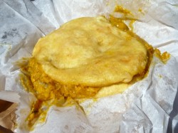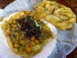 7) Anil's Roti Shop & Bakery 125-01 Liberty Ave., Jamaica, Queens; (718)845-2800, (Sun-Thurs, 6am-10pm; Fri-Sat, 6am-11pm). Corner roti shop calmly serves tepid, Indian-tasting Doubles ($1.00) at this Liberty Ave., outpost. The bara was flat but pillowy, the channa was sweet and tasted of Indian dahl and there was a decent spiciness but these Doubles were tired and tough to get to. B-/C+
