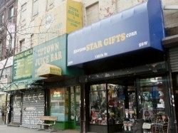 10) Uptown Juice Bar 54 West 125th St., Harlem; (212)987-2660, (daily, 8am-10pm). Narrow, crowded takeout joint purports to be vegetarian but smelled of fish. Inauthentic Doubles ($2.00) served sandwich-style on flaky, Jamaican-beef-patty-yellow bara leaves powdery residue on your fingers. Celery-studded channa lacked any sweet nuance. Hot sauce was the only accompaniment. They tend to run out by 1pm. Edible. C-