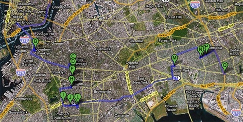 Below is a map featuring all above-mentioned Doubles locations save Harlem's, Uptown Juice Bar.