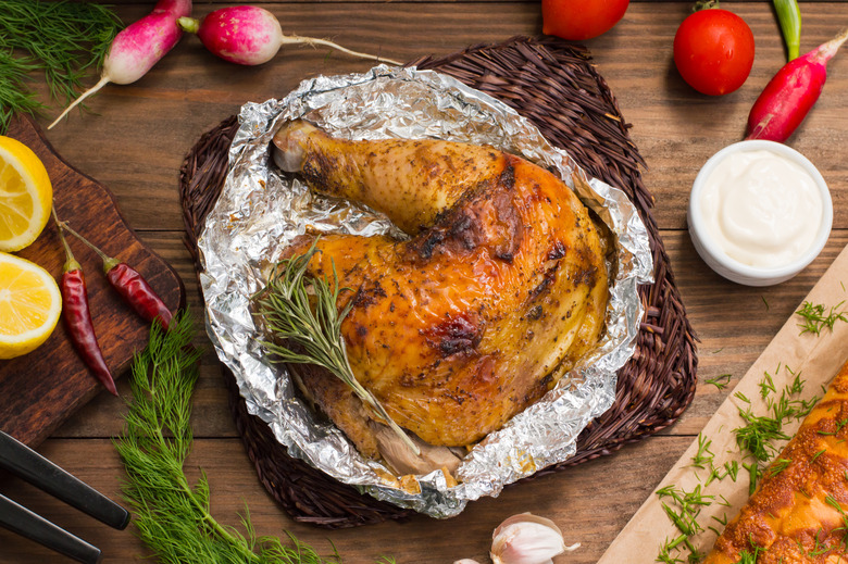 Since it's an emulsion, mayo also works wonderfully as an adhesive, acting as a glue to adhere flavoring agents onto charred foods. Planning on grilling some chicken thighs? Try brushing the meat down with mayonnaise before applying your favorite rub. The mayo helps the seasoning to stick to the meat, much more that than oil would. This also lowers the number of flare-ups on the grill because mayo is less viscous than oil. So next time you're planning on cooking a meal over the barbie, reach for the mayonnaise container in your refrigerator and add some flavor to these 30 genius recipes that will let you make dinner on the grill.