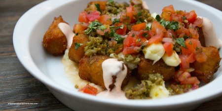 We started with the house-made Tater Tots with chorizo verde, Cheddar curds, queso fundido, and kimchi crema. For $10, we found this to be smallish in size despite the interesting array of toppings and condiments. Disregarding the price, we found these tater tots to be fantastic. They were slightly crispy pillows of mashed potato goodness laced by ingredients that offered up a wide range of complimentary flavors. The green chiles added spice and tartness while the crema was cooling. The chorizo contributed a bit of meatiness and the cheese curds were well, cheesy. Next up were the Brussels Sprouts ($7) with bacon, cotija cheese, and masa breadcrumbs. These were much spicier than we had expected, however, I personally liked the kick that lingered after the first bite. Although the sprouts were tender, they retained a pleasant crunch. Bringing the whole thing together was the smooth and creamy cheese as well as the saltiness of the bacon.