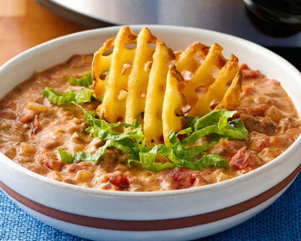 - To freeze: Store soup in quart-size resealable freezer plastic bags. Label, and freeze lying flat. To reheat: Defrost overnight in refrigerator, or in microwavable bowl on Defrost setting in microwave, stirring often. Then microwave uncovered on High 4 to 6 minutes or to 165 degrees F. Serve with freshly cooked waffle fries and shredded lettuce.