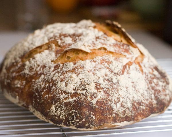 Today's Snackshot is of a loaf of fresh baked bread from the blog, Chocolate & Zucchini. This recipe comes from a sourdough starter, which was describes as, "a culture of wild yeasts and friendly bacteria that the baker keeps alive and thriving by feeding it water and flour on a regular basis. When mixed with a larger quantity of water, flour, and salt, and left to ferment, these micro-organisms act as a leavening agent that will make the dough rise to form an extraordinarily flavorful loaf, one with mildly acidic notes."