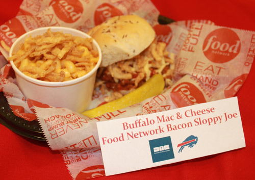 Ralph Wilson Stadium's Buffalo Mac & Cheese and Bacon Sloppy Joe. Photo courtesy of Sportservice.