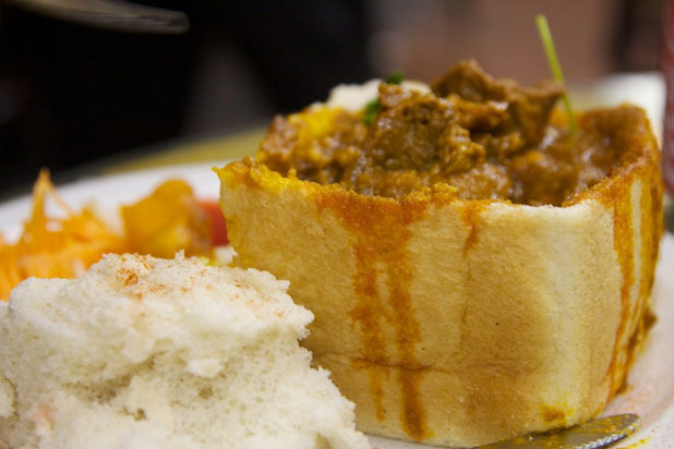 Despite what the name might suggest, bunny chow is a staple of the food scene in the South African city of Durban and is a chunk of hollowed-out bread filled with a variety of savory curries to choose from.