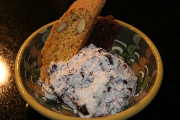 This light dessert is so easy to make, doesn't require any cooking, and is quite the crowd-pleaser. It was created in a pinch when I was to bring a dessert to a friend's apartment for a potluck. It was too hot outside to bake, but I wanted to do something with chocolate. I had some ricotta in the fridge but nothing else. With some quick thinking, I had created the perfect dessert to bring, and I only had to pick up some freshly baked almond cookies.
