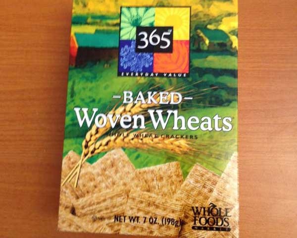 If you took a Triscuit and found a way to extract every last drop of oil from it, you'd likely end up with 365 Baked Woven Wheats, sold exclusively by Whole Foods. These crackers look exactly the same as their greasier cousin, but contain only two ingredients: whole wheat and salt.