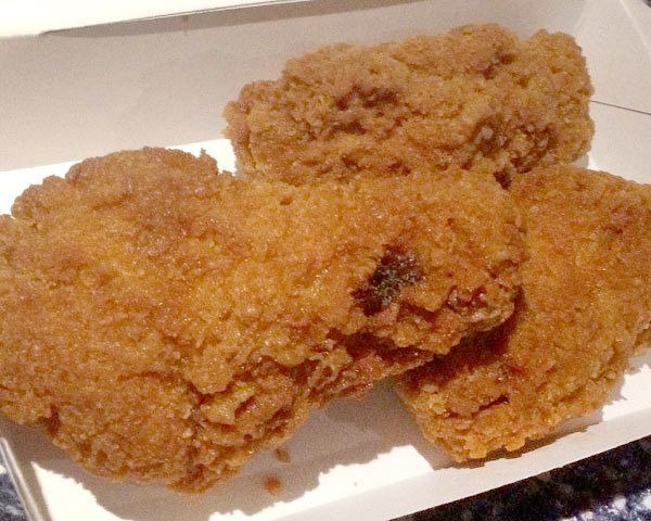 The wings themselves are nice-sized and supremely crunchy, and don't get soggy even after traveling inside the specially designed clamshell box, which has some extra ventilation built-in. The coating is probably too thick for conventional fried chicken, but it works in this smaller format. Because the wings are breaded, the chicken inside doesn't have an opportunity to get crispy, so be prepared to eat a lot of fat and flabby skin, but the chicken itself stayed juicy. They're also quite greasy, so make sure you have plenty of napkins on hand.