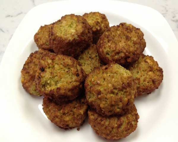 The main issue we had with these falafel was the texture. They were dense and mealy, a little tough and dry. Food falafel are usually loosely packed, but these were anything but. Possibly they were designed to not crumble when eaten, but we have to wonder if even a pita, tahini, hummus, and salad would have made these any more palatable. If you're going to serve them, we recommend you try to doll them up as much as possible beforehand.