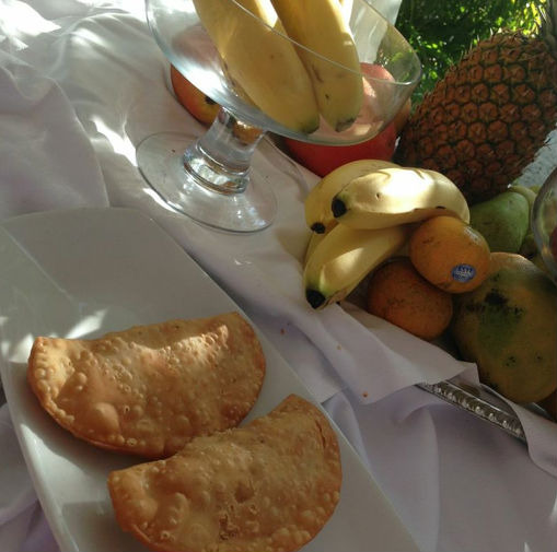 Pastechis, little meat-filled pockets akin to empanadas, are an Aruban favorite. It has a delicious, crisp, flaky crust and flavorful filling. You can get them all over the island since they are a local snack and breakfast food of choice. But my favorites were at Old Man and the Sea. The venue is gorgeous, with a massive bed where you can cozy up and drink and dine, complete with billowing curtains at the water's edge just like in the movies; a lovely scattering of small, wooden tables with their legs buried in the sand; and a private over water cabana complete with a romantic table for two. The serenity and the view made the food all the more delicious, especially the pastechis.