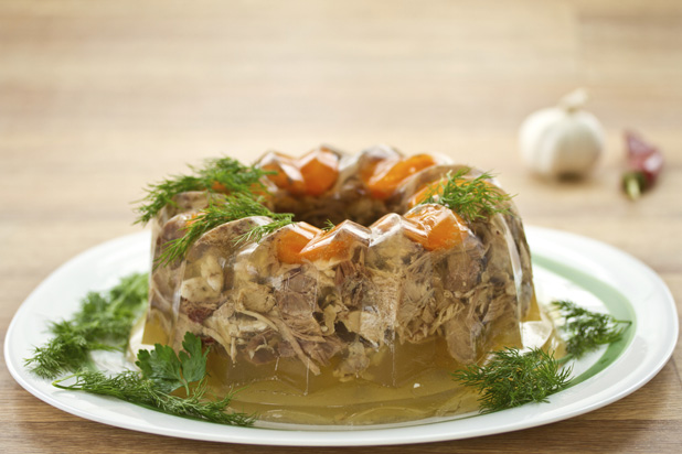 For those unaware of what aspic is, we're glad you asked. Basically, it's Jell-O, but generally flavorless and colorless. Once upon a time, people thought that it was brilliant to suspend other foods, like various meats and entire salads, inside of it. Thankfully, a couple decades ago, the general public collectively wished for all dishes involving savory items suspended in gelatin to go away, and they did. See? It is possible!