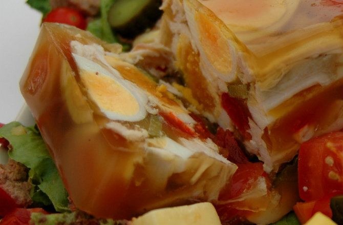 For those unaware of what aspic is, we're glad you asked. Basically, it's Jell-O, but generally flavorless and colorless. Once upon a time, people thought that it was brilliant to suspend other foods, like various meats and entire salads, inside of it. Thankfully, a couple decades ago, the general public collectively wished for all dishes involving savory items suspended in gelatin to go away, and they did. See? It is possible!
