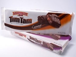 You have got to give Top Chef's Gail Simmons credit for excellent judgment. She's the spokesperson for the re-introduction into the United States of Australia's favorite cookie, the Tim Tam, courtesy of Pepperidge Farm. Tim Tams (not to be confused with Tam Tams, a matzo cracker made by Manischewitz and also enjoyed by Jews down under) is like a chocolate graham cookie on steroids.
