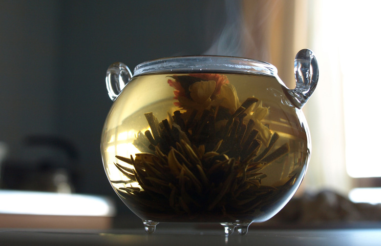 We couldn't have a list of teas for any occasion without including a tea party, could we? And Chinese-style flowering tea in a clear teapot doubles as both a beverage and a centerpiece. Tea leaves are wrapped around one or more dried flowers and tied into a ball. When placed into hot water, it blossoms into a beautiful floral display. These can incorporate any of several types of flower, including globe amaranth, jasmine, osmanthus, or chrysanthemum. Because the flower balls usually stay in the pot for decorative purposes, they are made of lighter teas, like yin zhen, that are less susceptible to over-steeping.