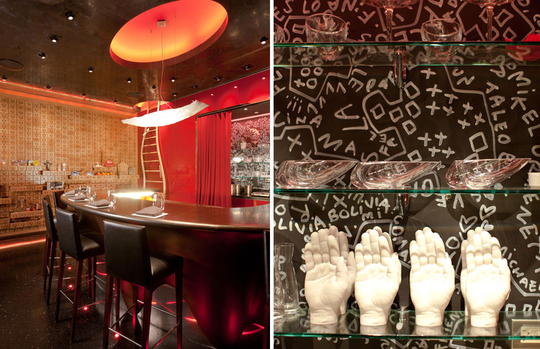 é by José Andrés, from the multi-award-winning chef, is an exclusive eight-seat bar tucked away within chef Andrés' Jaleo restaurant in The Cosmopolitan of Las Vegas. If they're lucky enough to snag a reservation, guests sit around a small kitchen table set against a dramatic décor that includes a red glass wall and red velvet curtain. In an interactive dining experience, a team of chefs prepares a "secret" multicourse tasting menu for guests (one that is basically impossible to find on any online reservation page, or even é's own, cryptic webpage). Some of the Spanish-influenced signature dishes reportedly include secreto of Ibérico pork with squid and Torta Pascualete — a type of Spanish cheese — with cotton candy.
