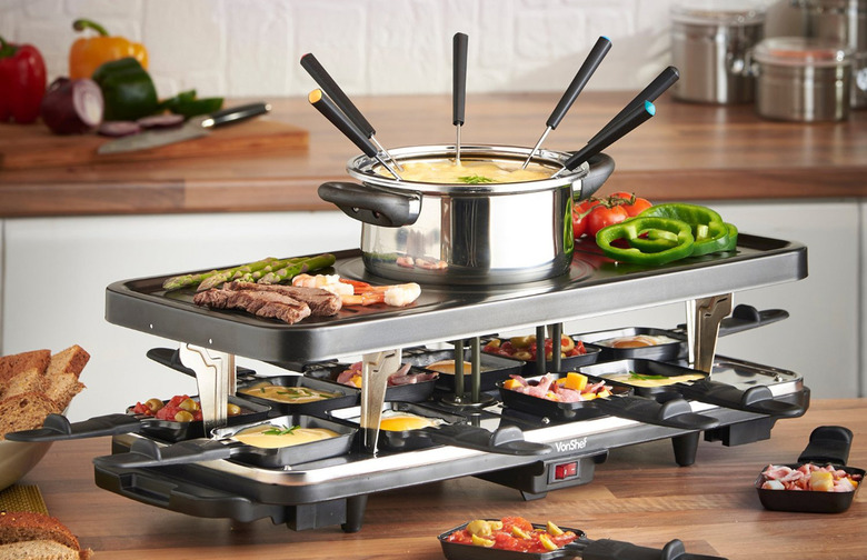 Individual portions of cheese? Swiss fondue? Sign us up. This gadget, which hails from Switzerland, requires users to insert individual pans of raclette cheese into this unique grill and remove them in time to dip bread, meat, and vegetables in the cheese (which are grilled atop the apparatus.)