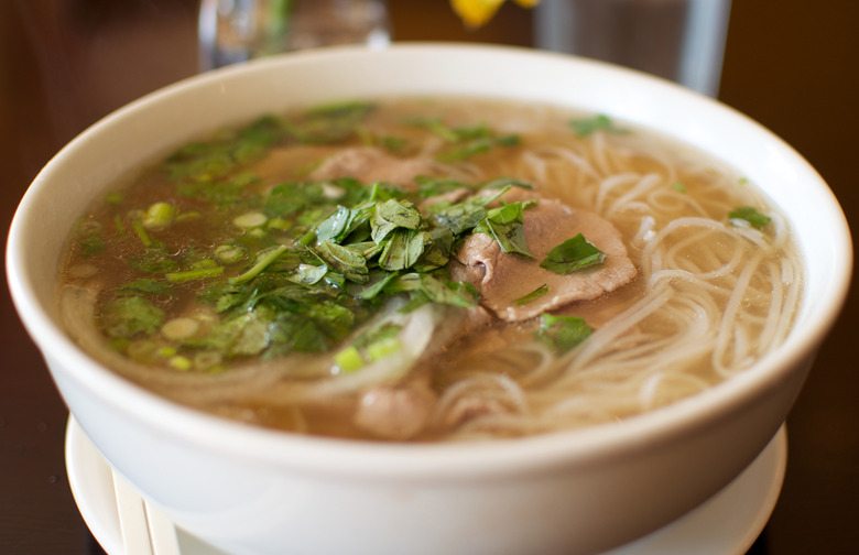 If I had a nickel for every time someone mispronounced the name of the most popular type of Vietnamese noodle soup — or at least hesitated before saying it correctly — I could buy an awful lot of it. People usually nail the "ph" as an "f" sound (not a whole lot of "pa-ho" out there), but it's odd for non-Vietnamese to lock down the "uh," at the end, as opposed to an "o" sound. We get it, it's confusing, so don't feel bad if the proper pronunciation has you thinking, "What the phở?"