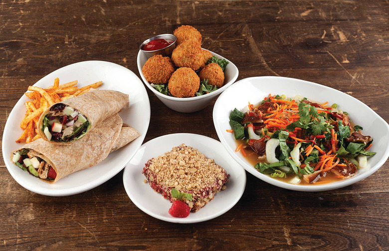 Boulder is home to a variety of vegan eateries, including Native Foods Café, which uses tempeh, seitan, and native chicken (made from free-range soy, wheat, and pea protein) for plant-based protein options. These are used to replace meat products in menu items like the Oklahoma bacon cheeseburger, nachos, and bacon and avocado club sandwich. Another local hotspot is Leaf Vegetarian Restaurant, which has options like vegan French toast and a vegan crab cake sandwich.