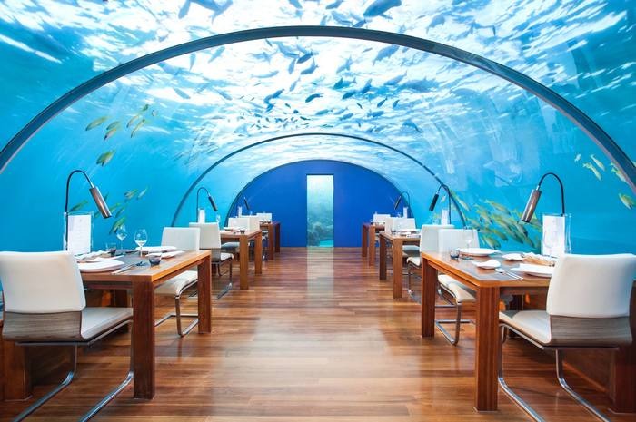 Ithaa Undersea Restaurant in Maldives has several distinctions: It was the first undersea restaurant in the world when it opened in 2005, and it has been ranked by The Daily Meal as the most beautiful restaurant in the world, as well as one of the most romantic restaurants, expensive restaurants, and hardest to get to restaurants. Even though there are numerous underwater restaurants around the world, none are quite as impressive, immersive, and unusual as this one. Located five meters below the surface in the Conrad Maldives Rangali Island hotel, Ithaa features full panoramic and overhead views of the surrounding coral gardens and sea life while diners feast on a seven-course meal of dishes like caviar, agnotti of duck, Maldivian lobster carpaccio, and beef tenderloin for dinner, or a four-course lunch option. Be prepared to splurge (lunch starts around $200 per person, dinner around $300), but also be prepared for the experience of a lifetime. In other words: Bring a camera. Even at night, the aquatic views are spectacular.