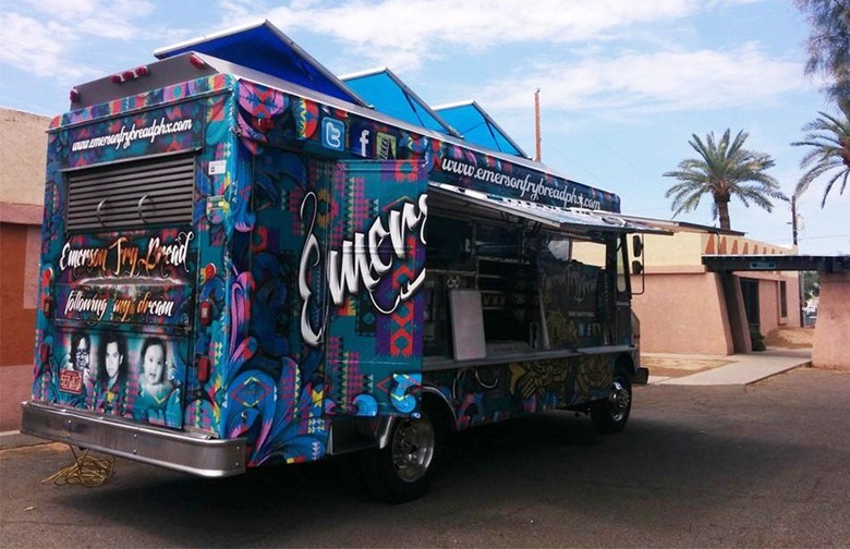 The colorful Emerson Fry Bread truck might very well be the only truck in the country that specializes in Native American cuisine — one of the most underrated cuisines of the world — with a Mexican twist. Customers pick a protein and a wrap style, such as "Jazzy" (Indian-style with beans, carne asada, cheese, and pico de gallo), "Mi Bandera Linda" (with handmade red and green chile sauces), or "Bolli" (served in a taco bowl), and wash it all down with a fan-favorite 32-ounce prickly-pear-based juice. Emerson is a testament to the creativity needed to run a successful food truck.