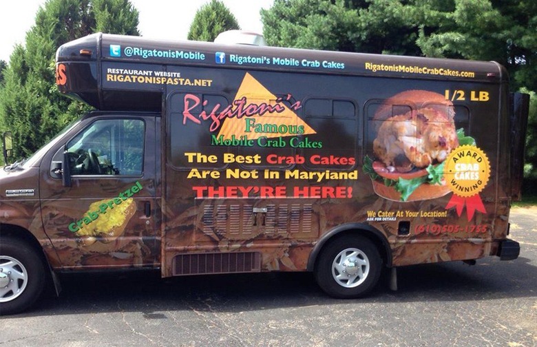 "The best crab cakes are not in Maryland," boasts the writing on the Rigatoni's Mobile Crab Cakes truck. "They're here." In Prospect Park, Pennsylvania, that is. Don't believe us? Check out the lines outside the truck on its Facebook page. After all, who could resist its delightful take on the specialties of Baltimore and Philadelphia in the form of their crab pretzel, a soft pretzel topped with crab dip and Cheddar cheese? The crab-stuffed onion ring ain't too shabby either.