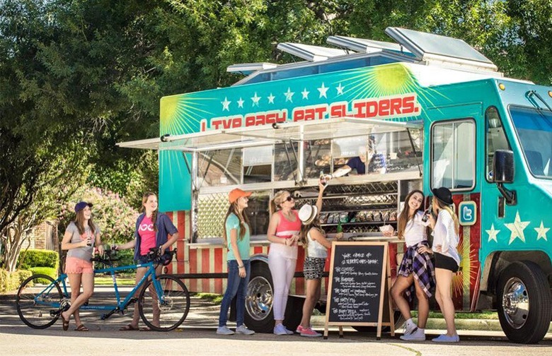 With perhaps one of the cleverest food truck names on this list, Easy Slider serves creative mini burgers that use certified Angus beef and farmers market produce out of their red, white, and electric blue vehicle. They introduce sweet flavors into savory sandwiches in not-too-sneaky ways: by using strawberry jam in their burger with bacon and goat cheese, peanut butter instead of cheese in their bacon burger, and sea salt caramel with grilled red onions in their Sugar Derby burger. You don't want to miss their Baby Bella, with a Texas-born portabella mushroom patty topped with the basic components of a caprese: mozzarella, tomato, and basil pesto.