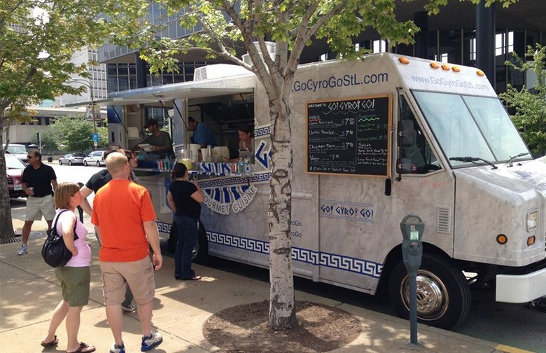 Is it "jy-ro" or "year-o"? However you say it, you'll call the rendition served by Go! Gyro! Go! "tasty." Owners Nick and Laura Cowlen bought their truck in 2011, outfitted it themselves, and set out into the streets of St. Louis with food inspired by the family recipes of his yia-yia and papou (both from the island Zakynthos off the southwest coast of Greece) and his own experiences when visiting the motherland. The menu is pretty simple: gyros. There's the classic beef and lamb, chicken souvlaki, chicken tahini, and veggie gyro. Go with the classic: spiced beef and lamb wrapped in a freshly grilled pita with sliced tomato, red onion, feta, parsley, and homemade tzatziki.