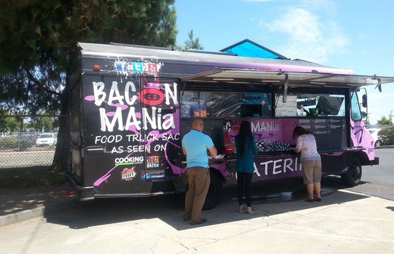 Operated by two high school friends who were brought together by their love of bacon, the light pink-colored Bacon Truck serves only one item that doesn't ostensibly include bacon, and that's habanero garlic pickles. By all means, order them as a side, but do not miss "The Hangover," which consists of bacon, bacon scallion hash, Cheddar, and havarti with a fried egg, or the Turkey Avo, with truck-roasted turkey breast, bacon, beefsteak tomatoes, lettuce, and chimichurri aïoli. And for dessert? Nutella-covered bacon, of course.