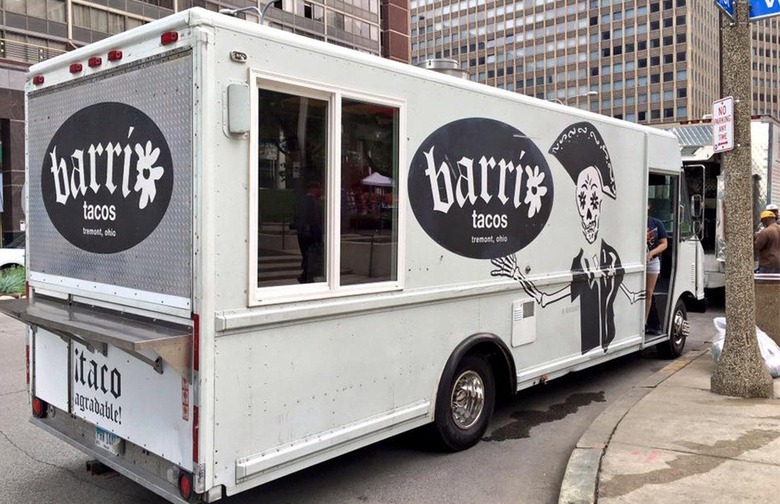A large calaca (stylized Mexican skeleton) with arms open wide adorns the Barrio food truck, inviting you to build your own tacos. You can choose from five different kinds of tortillas, such as the "White Widow," a soft flour tortilla with guac, sour cream, and "crunch"; nine different kinds of filling, including a fish of the day; queso fresco, smoked Cheddar, or Chihuahua cheese; and a bevy of toppings, salsas, sauces, and sides. But hey, it looks like these guys know what they're doing, so try one of their suggestions, like the "El Puerco," with pulled pork, quesos blanco and fresco, salsa roja, and chipotle honey; or their taco of the month, which features the most seasonal of ingredients.