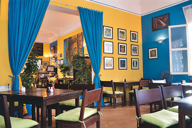 Opened in 1999 in a colonial bungalow, Mumbai, India's fine dining restaurant, Indigo, is now a don't-miss destination. Rahul and Malini Akerkar, the minds behind the hospitality-minded eatery, chose to focus on intimate and comfortable dining, which is reflected in both the space and the food. The warm-toned cream-yellow walls feel homey, and minimal art and decoration keep the space somewhat bare and open to interpretation. The menu changes constantly, yet always revolves around a loosely European theme. Try the leek and green apple soup, recommended served cold; artichoke, lima bean, and radicchio salad with lemon Parmesan dressing; grilled cottage cheese with coriander chile pesto, curried leeks, and sautéed cabbage; and the charred beef tenderloin with mushroom and caramelized onion sauce, carrots, and creamy mashed potatoes.
