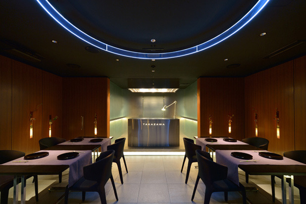 Chef Yoshiaki Takazawa opened his restaurant as a two-table hideaway in 2005, dubbing it Aronia, the genus name of two species of chokeberries — powerful, highly astringent, antioxidant-rich, deciduous North American berries used in some wines, jams, syrups, juices, and teas. In 2012, he renamed the place after himself, but still serves only 10 diners an evening. Behind an unmarked door in Tokyo's Akasaka District, at a shiny, illuminated chef's counter, he offers $220, 10-course meals of great imagination. There's the playfulness of a foie gras crème brûlée with pear sauce that resembles a candle, the trompe l'oeil of a "potato" that's actually potato purée, a reinvented steak tartare that employs venison and uni instead of steak and egg yolk, and a curry ice cream. along with all the burning-leaf-as-atmosphere, think-about-your-food-as-more-than-food, and modernist technique you might expect.