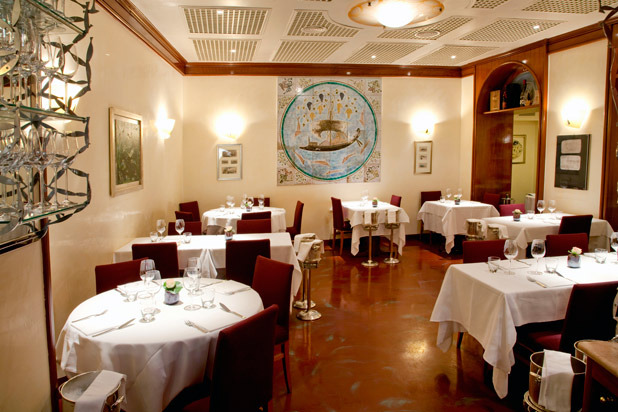 When Alain Ducasse opened Le Louis XV, Prince Rainier III of Monaco set him a challenge: turn the restaurant into the first in the principality to be awarded three Michelin stars, and do it within four years. Ducasse succeeded after only three. In this opulent Versailles-inspired dining room, replete with frescos, chandeliers, and velvet accents, guests can dine on refined cuisine from chefs Franck Cerutti and Dominique Lory. The menu includes San Remo gamberoni with delicate rock fish gelée and caviar; a Alpes-de-Haute-Provence grilled duck with polenta; Mediterranean sea bass with fennel, radicchio, and citrus; gnocchi with red squash and black truffle; and a selection of regional cheeses.