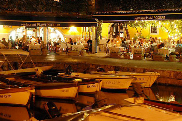 The oldest restaurant in the tiny fishing village of Volosko, Plavi Podrum is known for its seafood dishes and incorporating regional products like asparagus, truffles, and nettles. The seasonally changing menu includes scampi buzara and polenta with new corn and herbs, wild asparagus and champagne risotto, and chocolate cake and chocolate mousse made from Lindt 72 percent Ecuadorian chocolate and accompanied by orange and homemade chocolate ice cream with red pepper flakes.