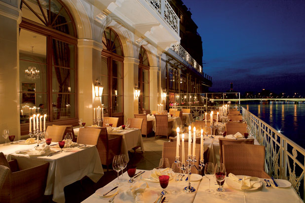 The Hôtel des Trois Rois, on the banks of the Rhine in Basel, is one of several establishments that claims to be the oldest continuously operating hotel in Europe (it is mentioned in documents as early as 1681), but there's nothing antique about chef Peter Knogl's two-Michelin-starred cuisine, which runs from foie gras with pineapple and black pepper and fried scampi with trumpet mushrooms and chive sauce to Bresse pigeon with Moroccan flavors and glazed Nantais duckling with fig juice for two. Lukewarm chocolate cake with mango and coconut ice cream is a dessert not to be missed.