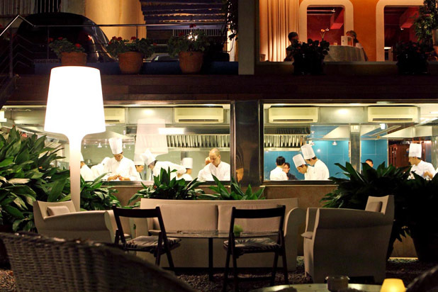 When Alain Ducasse opened Le Louis XV, Prince Rainier III of Monaco set him a challenge: turn the restaurant into the first in the principality to be awarded three Michelin stars, and do it within four years. Ducasse succeeded after only three. This opulent Versailles-inspired dining room, replete with frescos, chandeliers, and velvet accents, one of three Ducasse restaurants to make The Daily Meal's 101 Best Hotel Restaurants Around the World, is celebrating its 25th anniversary this year with a special menu prepared by chefs Franck Cerutti and Dominique Lory. Included are San Remo gamberoni with delicate rock fish gelée and caviar; a Haute-Provence small spelt, morels, and spring vegetables; snapper and trombetta zucchini with condiments; suckling lamb roasted in the fireplace with peas, spring onions, green garlic, and pommes grenaille; a selection of regional goat's cheese; bitter citrus fruit with lemon jelly and grapefruit/Campari sorbet; and warm Piedmont hazelnut soufflé.