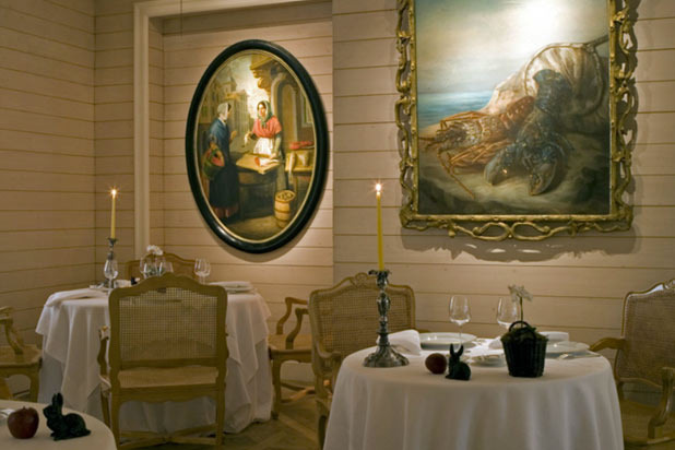 "Finesse is the message here," says chef Peter Goossens of Hof van Cleve. Every detail, from the crisp white linens to the artisanal vases and flatware, exudes individuality and character. There are three set menus, including the daily changing multi-course Market Walk menu and a seasonally changing Freshness of Nature offering. The latter might include scallops with piccalilli, cucumber, and smoked eel; langoustines with quinoa, shiitakes, and shellfish; and Flemish hare with chicory, lingonberry, and Jerusalem artichoke.