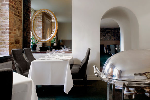 In a warm basement dining room below the Dublin Writers Museum, its walls hung with superb contemporary Irish art, Cork-born Ross Lewis produces superb contemporary Irish food, based on first-rate ingredients prepared with imagination and a practiced hand. Lewis doesn't hesitate to work an occasional foam or emulsion into his food, but keeps his feet firmly planted in Irish soil. Typical dishes at Chapter One are mushroom consommé with smoked potato and buttermilk foam, crab salad with pickled seaweed, charcoal grilled monkfish with razor clams, pig's tail stuffed with smoked bacon, and cheesecake made with Irish buffalo-milk ricotta, with crushed oat biscuits, lemon curd, and strawberries.