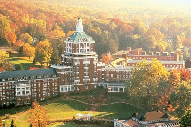 The Grove Park Inn has had a ghost roaming its halls for more than half a century. She is referred to as the Pink Lady because of the flowing pink gown she wears. It is believed that this young woman was a guest in Room 545 in the 1920s and that she either jumped or was pushed to her death in the Main Inn's Palm Court, five floors below. She is reportedly still seen on the property, especially by young children; some say they just see a pink mist, others a full apparition of a young long-haired beauty in a pink gown. Guests who visit can take in the sights of the Blue Ridge Mountain's fall foliage from the Sunset Terrace, and guests can try the tasting menu at The Grove Park Inn's Horizons restaurant, which serves contemporary American cuisine using fresh ingredients from local farmers.